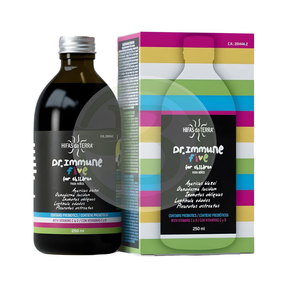 Ver más grande Los ingredientes que contiene Dr. Inmune Five se emplean habitualmente para estimular al sistema inmunológico, ayudando a activar nuestras defensas de una manera natural. AsÃ, Dr. Inmune Five, elaborado de manera ecológica por Hifas Da Terra es una ayuda relevante para contribuir a la protección del organismo.