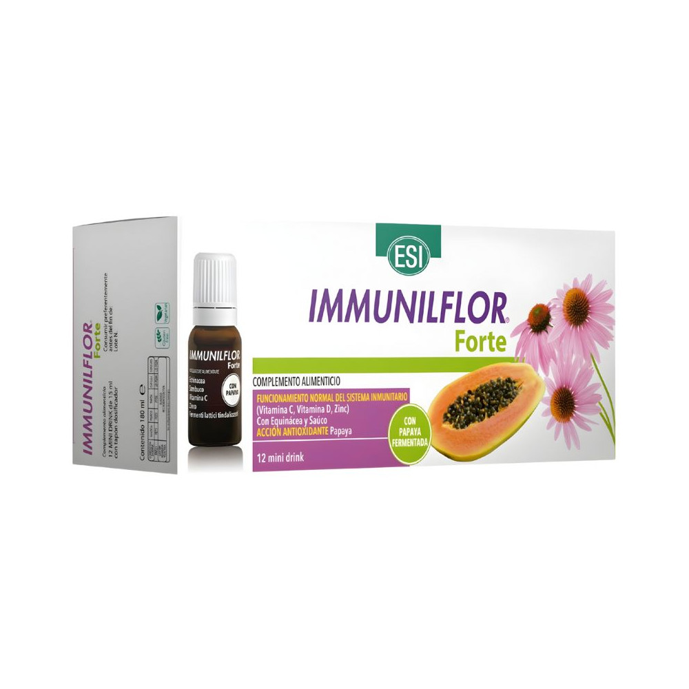 En Bioherbolario, te presentamos Immunilflor Forte Mini Drink de ESI, tu asistente óptimo para potenciar tus defensas de manera natural. Este producto ha sido cuidadosamente desarrollado para aquellos que desean incrementar su sistema inmunológico y mantenerse saludables frente a las amenazas externas.Immunilflor Forte Mini Drink de ESI destaca por su fórmula a base de ingredientes naturales, reconocidos por sus propiedades inmunomoduladoras. Estos ingredientes trabajan en conjunto para apoyar y reforzar las defensas naturales del cuerpo, apoyándote a enfrentar mejor virus, bacterias y otros agentes patógenos.Este remedio natural para fortalecer el sistema inmunológico es perfecto no solo para la prevención, sino también como un complemento en periodos de necesidad, como los cambios de temporada o fases de alta tensión, donde el sistema inmunológico puede debilitarse. Con Immunilflor Forte Mini Drink de ESI, te beneficiarás de un apoyo extra para tu salud, manteniéndote enérgico y protegido.Disponible al precio más competitivo en Bioherbolario, Immunilflor Forte Mini Drink es la decisión sabia para quienes buscan una alternativa natural y efectiva para incrementar sus defensas. Incorporando Immunilflor Forte Mini Drink en tu rutina diaria, estarás haciendo un paso importante hacia un salud a largo plazo. Mejora tus defensas de forma natural y segura con Immunilflor Forte Mini Drink, y experimenta cada día con mayor protección.