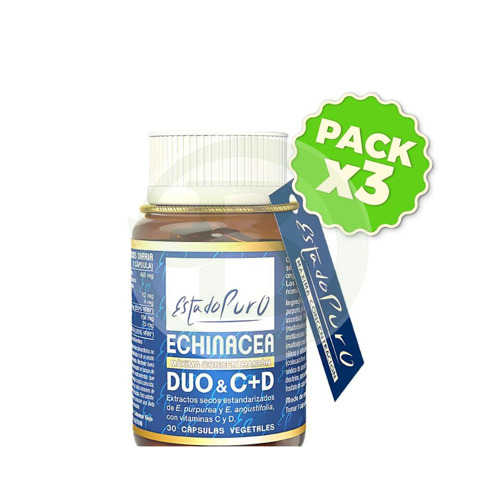 Extracto seco de partes aereas de echinacea purpurea, vitamina C (acido L-ascorbico), complejo de citroflavonoides, capsula vegetal (hidroxipropilmetilcelulosa), extracto seco de raiz de echinacea angustifolia, antiaglomerantes: dioxido de silicio y estearato de magnesio y vitamina D3, estabailizantes: octenilsuccinato sodico de almidon y goma arabiga, aceite vegetal, maltodrextrina, antioxidantes: alfatocoferol, ascorbato de sodio, fosfato de calcio dihidrogenadoModo de Empleo: