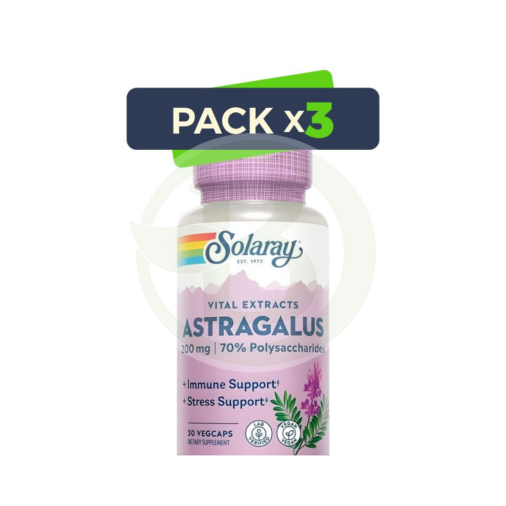 Pack 3x Astragalus Extracto De Raíz 200Mg 30 Cápsulas Vegetales Solaray
