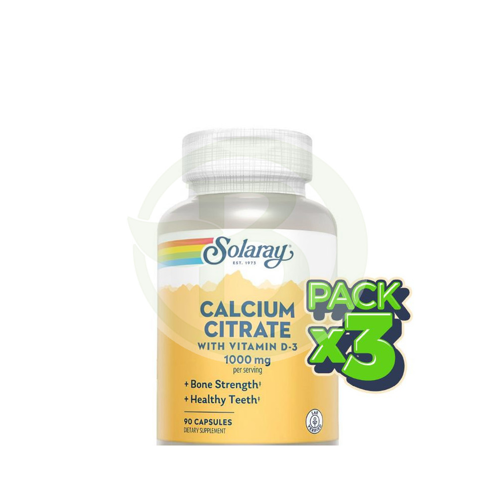 Pack 3x Calcium D3 Citrate 90 Cápsulas Solaray