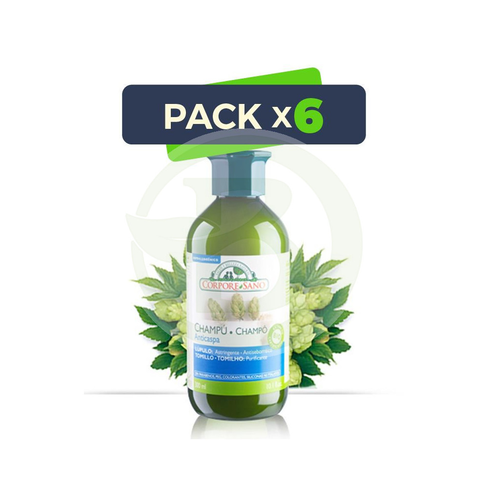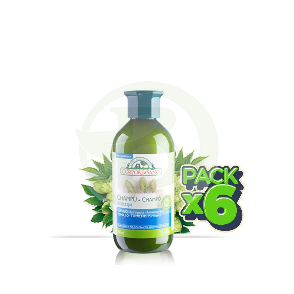 Champú Anticaspa de Corpore Sano elaborado con productos naturales como el tomillo o el lúpulo, con una contrastada acción antiseborreica.