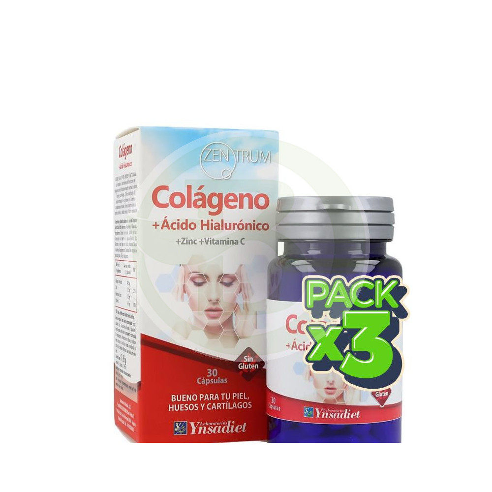 Pack 3x Zentrum Colágeno + Ácido Hialurónico 30 Comprimidos Ynsadiet