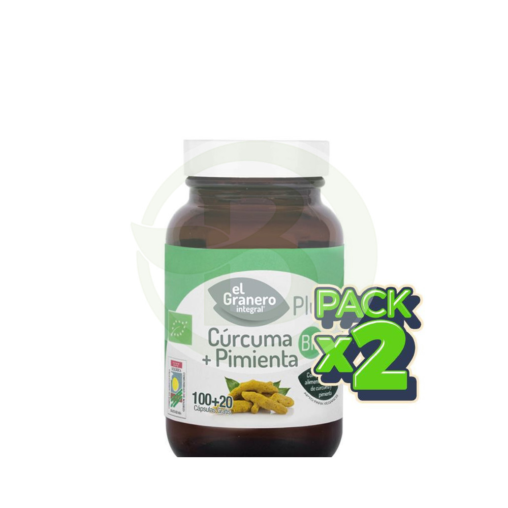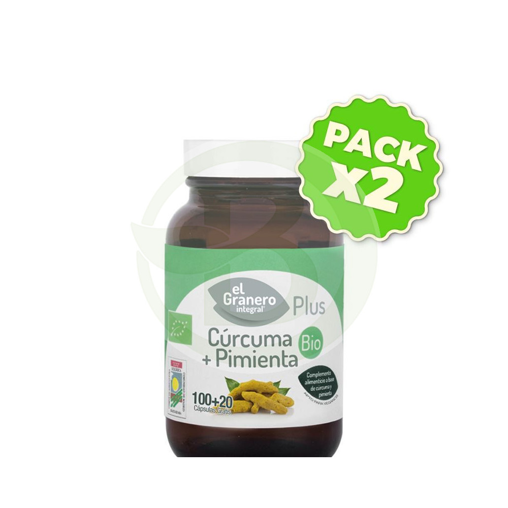 ¡Precio rebajado! Pack 2x Cúrcuma + Pimienta Bio 120 Cápsulas El Granero Ver más grande