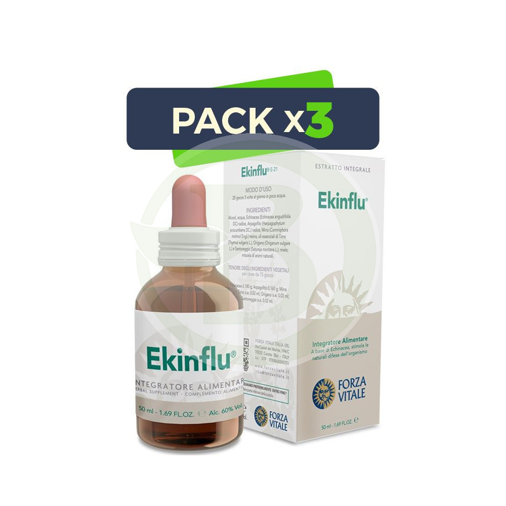 Ekinflu de Forza Vitale es un compuesto espagírico compuesto por extractos de plantas habitualmente usadas como fortalecedores de las defensas.
