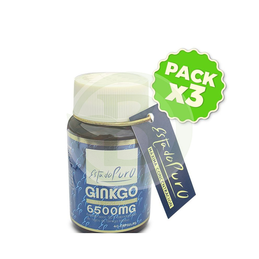 Ginkgo Biloba de Estado Puro, complemento alimenticio usado habitualmente por su acción favorable sobre la micro-circulación.COMPRAR Pack 3x