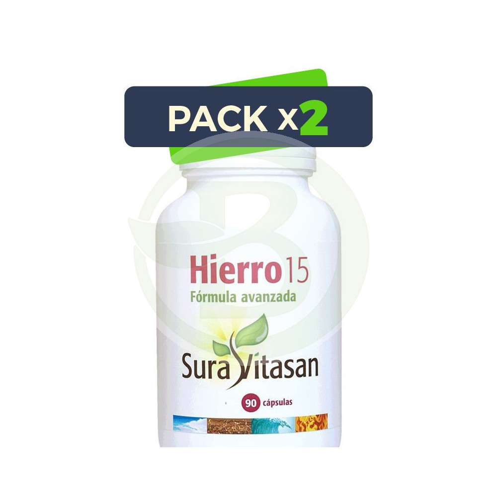 Hierro 15 de Sura Vitasan es un complemento elaborado a base de hierro, vitamina C y vitaminas del grupo B, aportando 15Mg. de hierro por cápsula.