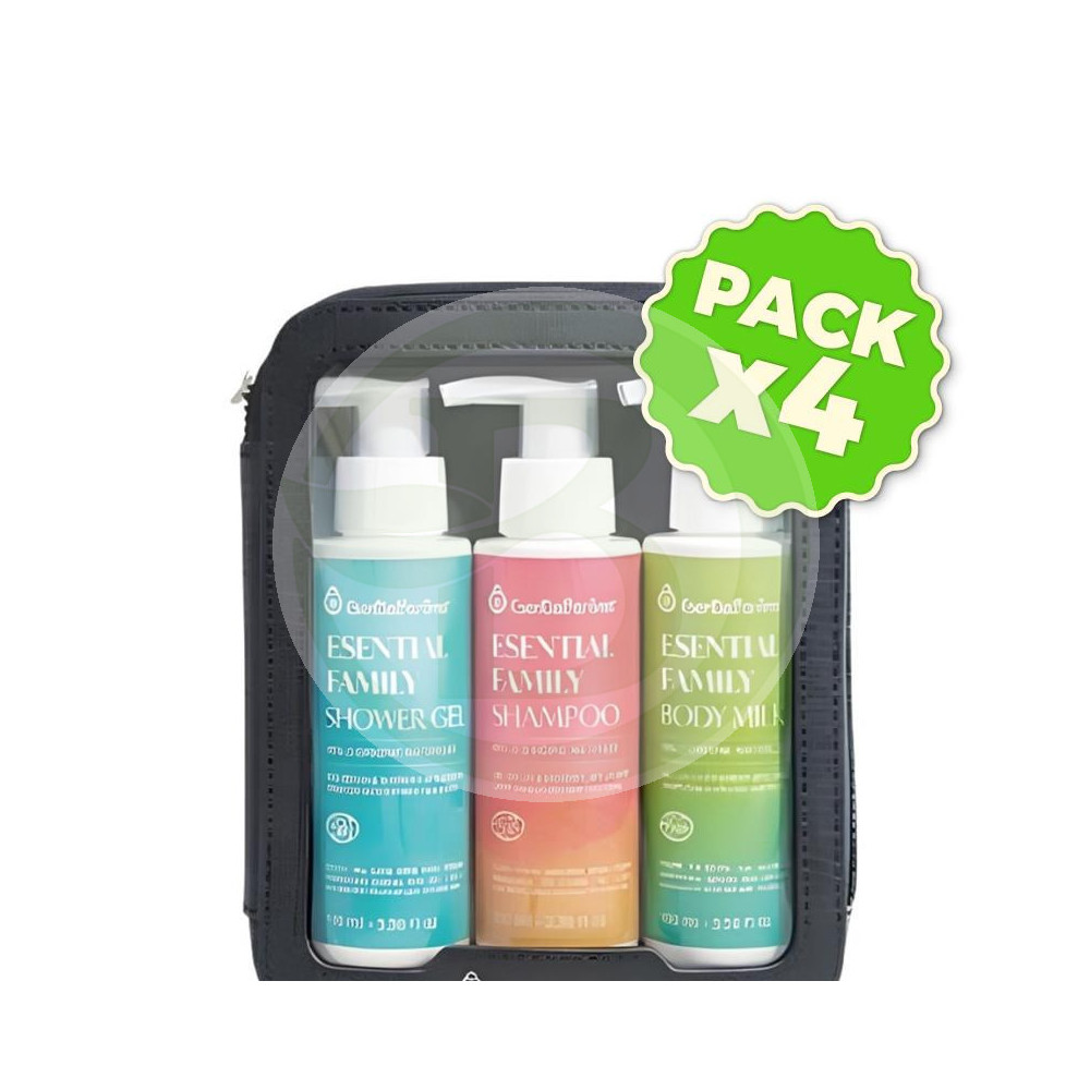 Pack compuesto por 1 Gel Corporal Esential Family 100ml, 1 Champú Esential Family 100ml y 1 Crema Corporal Esential Family 100ml.