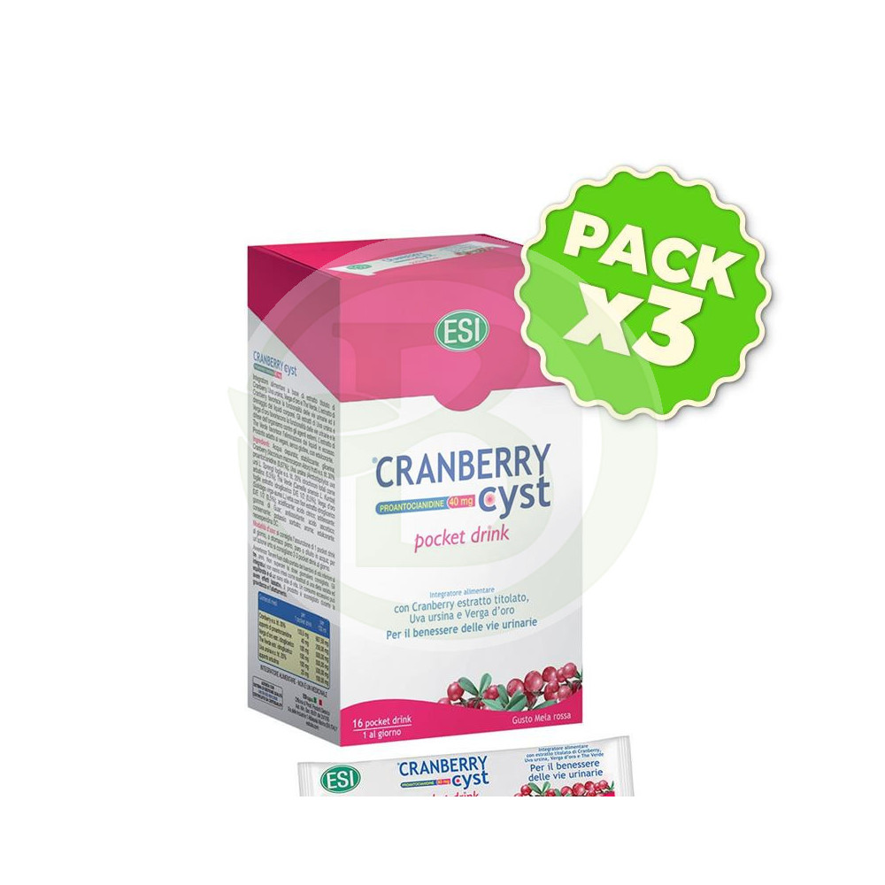 Cranberry Cyst Pocket Drink 16 sobres bebibles, con una mezcla de ingredientes comúnmente utilizados para conseguir un bienestar en las vías...