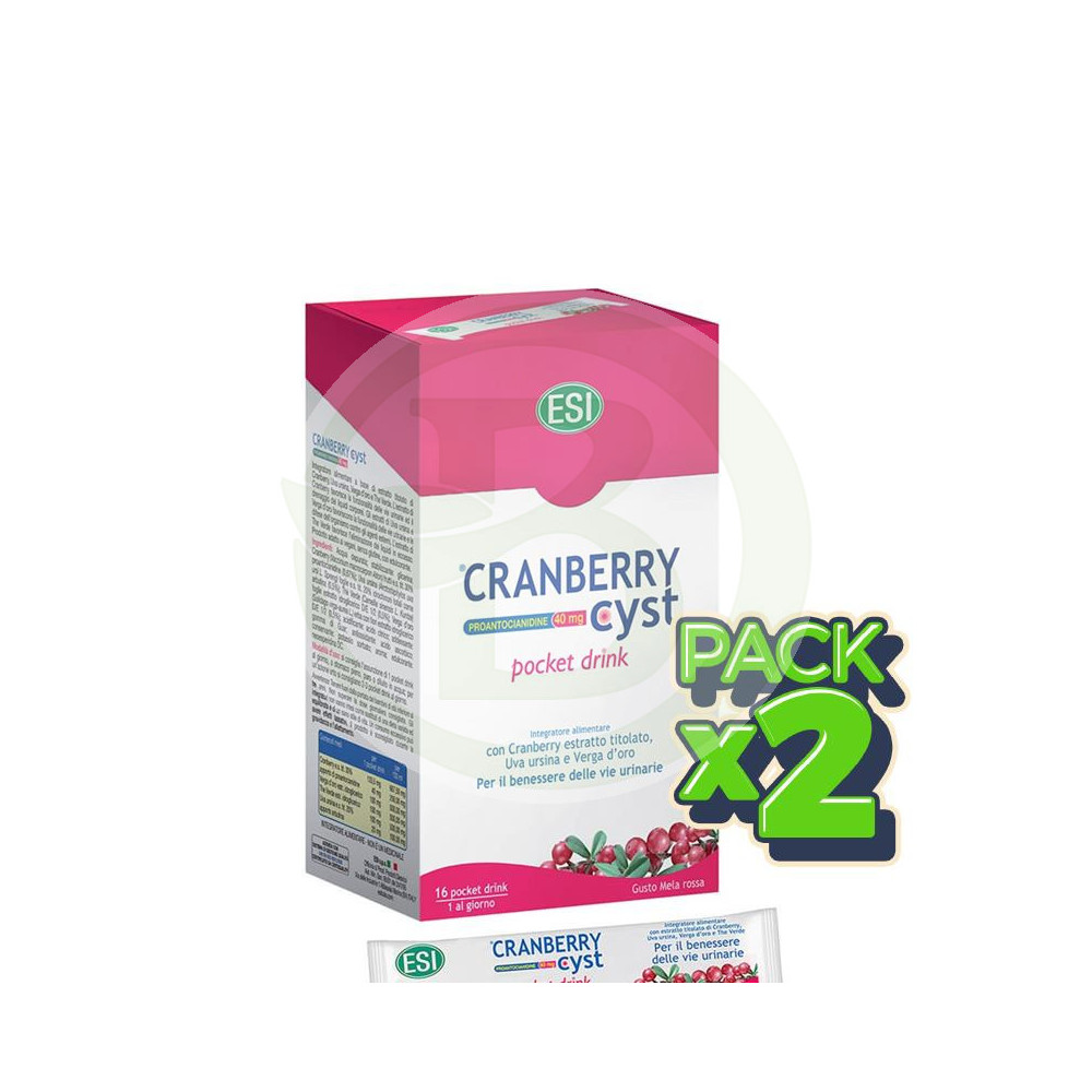 Cranberry Cyst Pocket Drink 16 sobres bebibles, con una mezcla de ingredientes comúnmente utilizados para conseguir un bienestar en las vías...