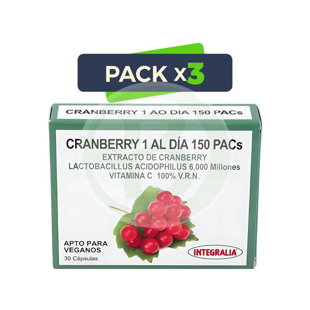Pack 3x Cranberry 1 al Día 150 Pacs 30 Cápsulas Integralia