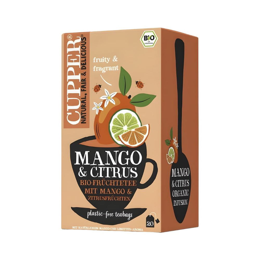 Honeybush*, gránulos de manzana*, raíz de regaliz*, aroma natural de mango* 8,5%, hibisco*, piel de naranja* 3%, raíz de achicoria*, piel de lima* 0,5%, aroma natural de lima 0,5%.