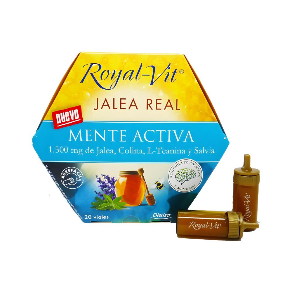 Agua, Concentrado de manzana, Jalea real liofilizada, Jarabe de agave, Citrato de colina, L-teanina, Extracto seco de salvia (Salvia lavandulifolia Vahl., hojas), Taurina, L-glutamina, L-tirosina, Conservador (sorbato potásico), Vitaminas (D-pantotenato cálcico, cianocobalamina, clorhidrato de piridoxina, clorhidrato de tiamina, ácido pteroilmonoglutámico (que aporta ácido fólico)), Aroma.Modo de Empleo: