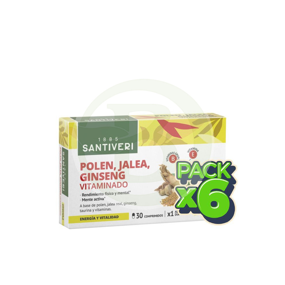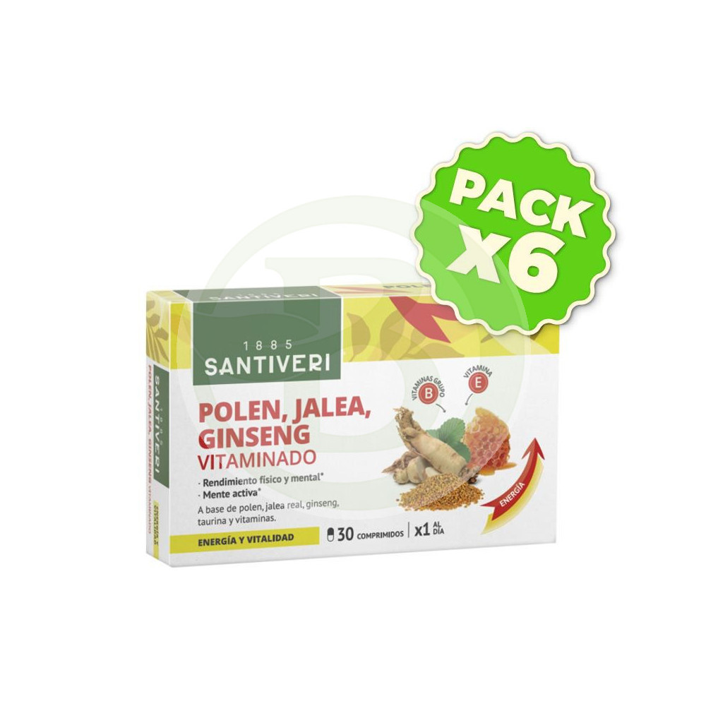 Extracto seco de ginseng coreano, extracto seco de ginseng siberiano, celulosa microcristalina, extracto de polen, vitamina E, vitamina B3, dioxido de silicio, jalea real liofilizada, taurina, vitamina B5, vitamina B2, vitamina B6, vitamina B1, vitamina B9, biotina, vitamina B12, estearato de magnesioModo de Empleo: