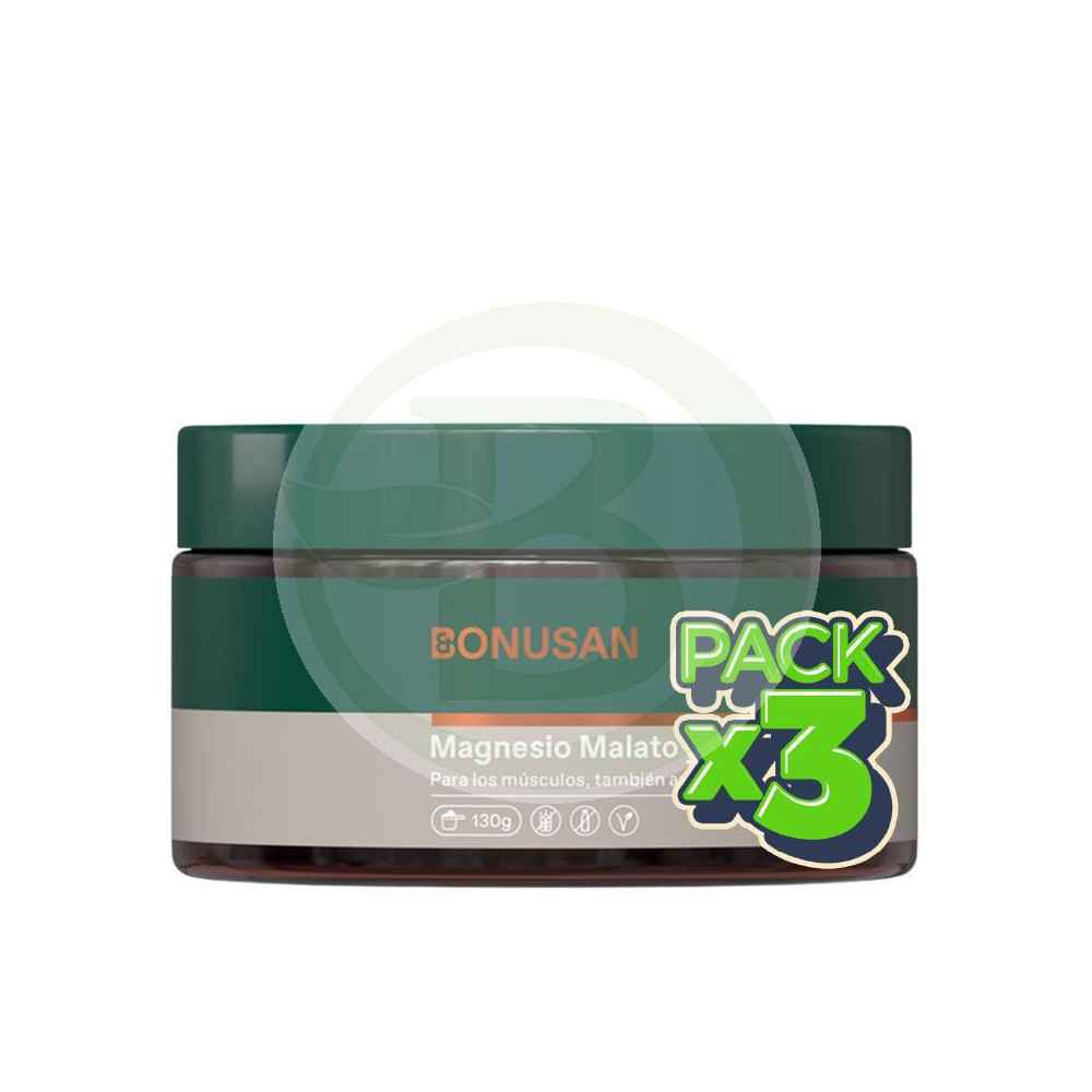 Pack 3x Magnesio, Malato y Citrato en Polvo 130 Gr Bonusan
