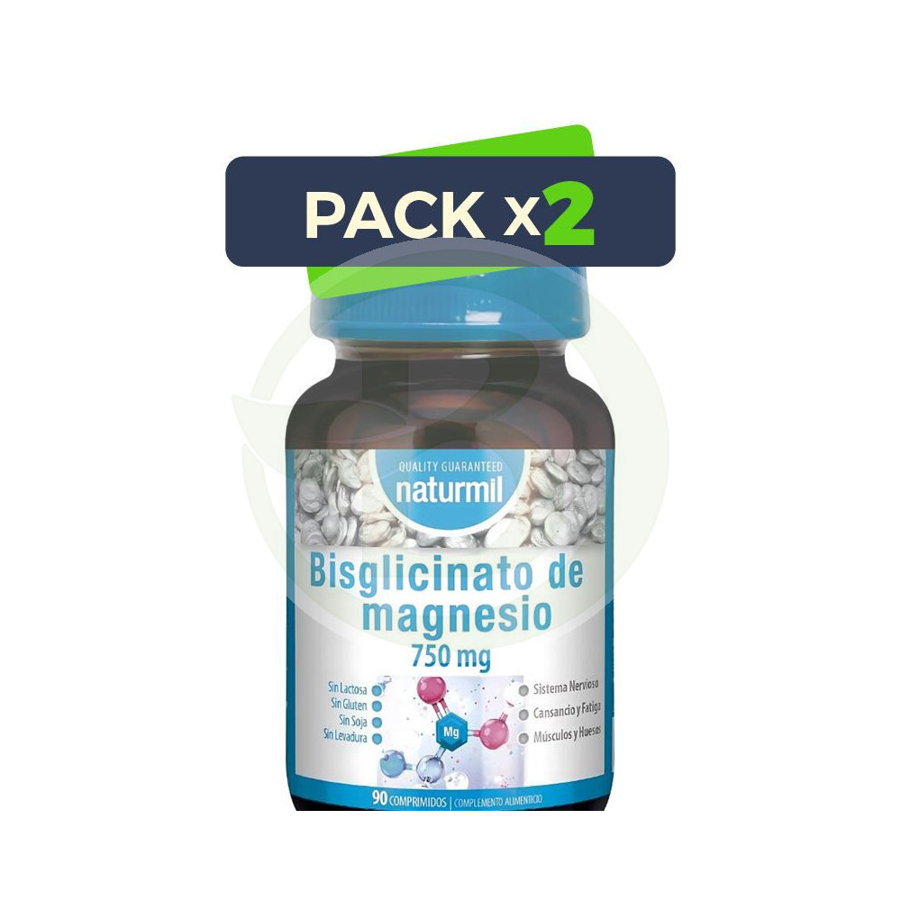 Pack 2x Bisglicinato De Magnesio 750Mg 90 Comprimidos Naturmil