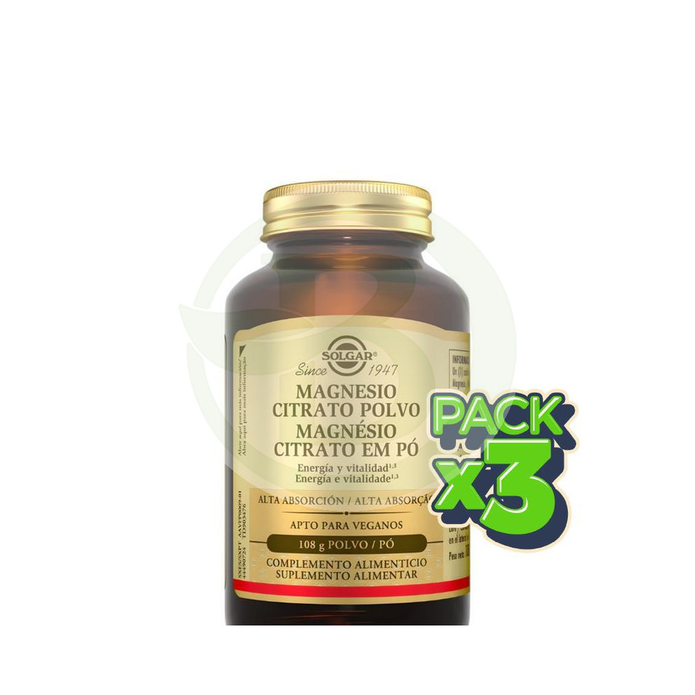 Pack 3x Magnesio Citrato en Polvo 108G Solgar