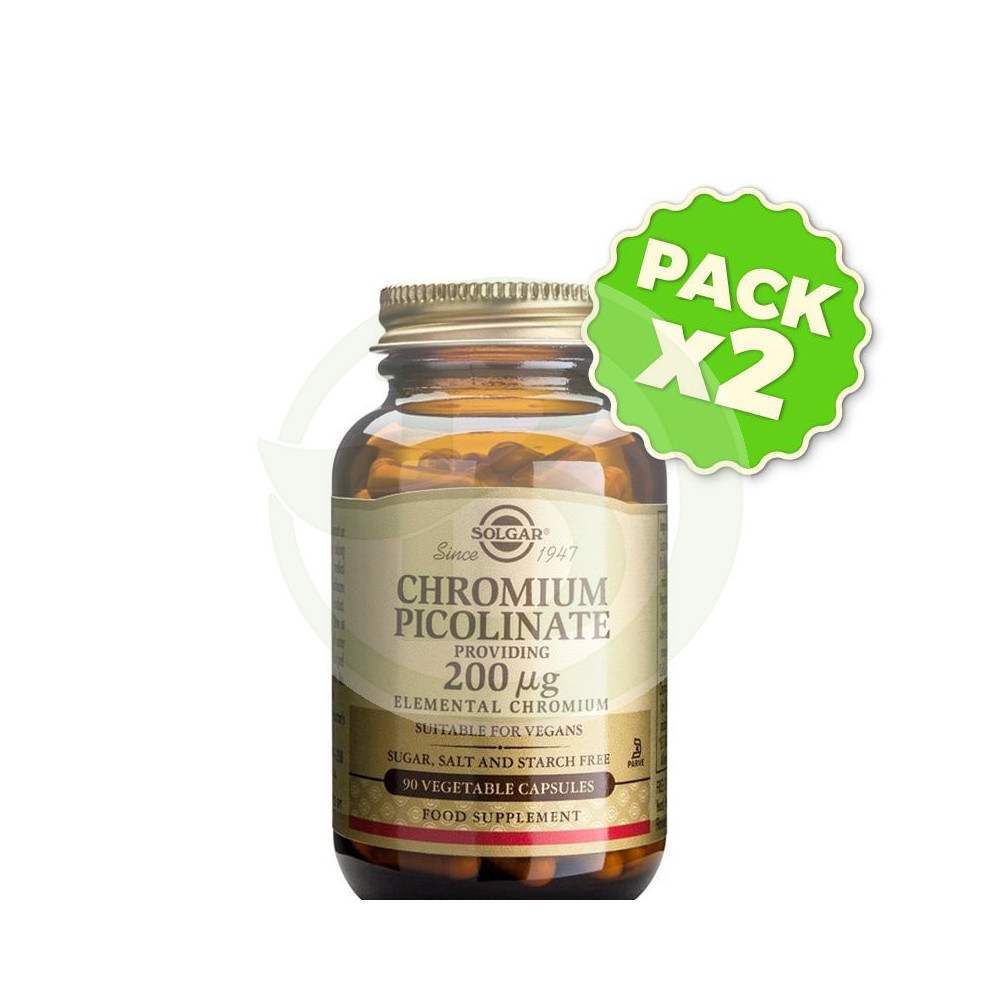 Pack 2x Picolinato de Cromo 200Mcg. 90 Cápsulas Solgar