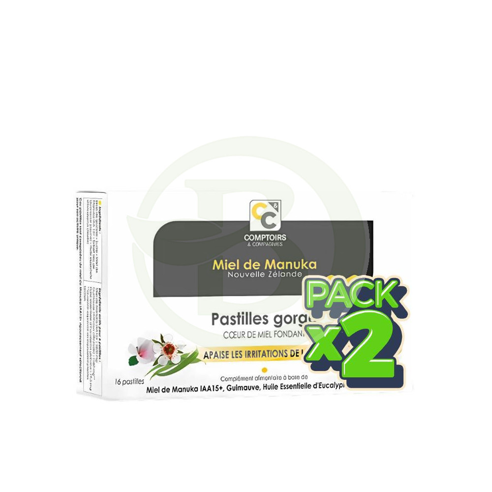 Jarabe de glucosa, Azúcar, Miel de Manuka IAA 15+, Extracto seco de malvavisco (raíz), Aceite esencial de eucalipto (hoja).Modo de Empleo: