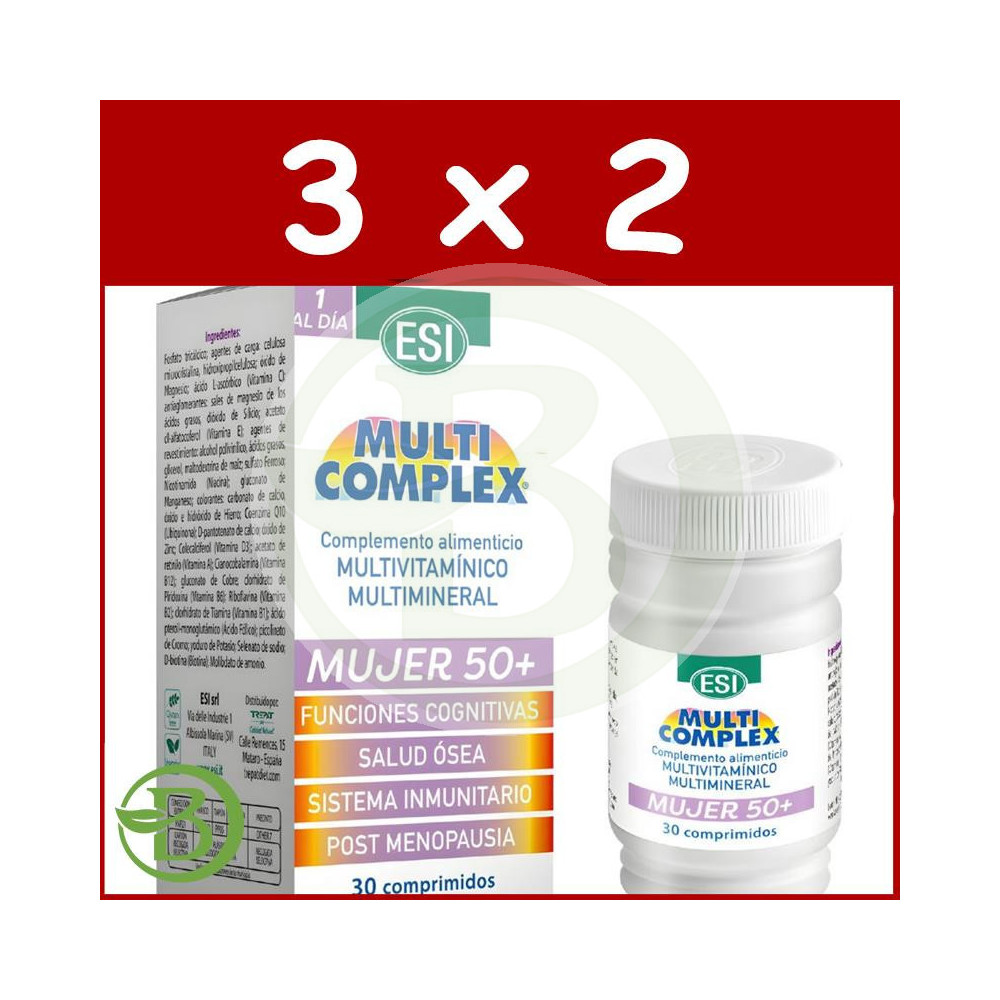 Multicomplex Mujer 50+ está elaborado de manera natural por Esi a base de vitaminas , que se utilizan comunmente para mejorar las funciones vitales...