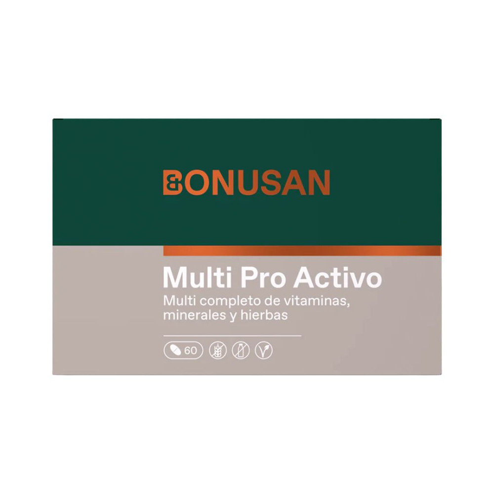Este suplemento se distingue por su capacidad para incorporarse perfectamente en tu rutina diaria, brindando un espectro integral de vitaminas y minerales esenciales que tu cuerpo necesita para rendir al máximo.La elección de Multi Pro Activo de BONUSAN como tu suplemento multivitamínico no solo refleja un compromiso con tu salud, sino también con el medio ambiente, dado que BONUSAN prefiere componentes de fuentes sostenibles y de alta calidad. Este planteamiento garantiza que cada toma aporte a tu salud integral, apoyando desde la energía y la concentración hasta una inmunidad robusta y una piel más luminosa.Entre los principales aportes de incorporar Multi Pro Activo de BONUSAN en tu dieta está su potencial para cubrir posibles huecos en la nutrición, ofreciendo un equilibrio que a veces es difícil de lograr solo con la alimentación. Además, su origen natural asegura una mejor integración y armonía con el organismo, haciendo de Multi Pro Activo de BONUSAN una elección favorita para aquellos que buscan mantener un estilo de vida saludable de manera integral.