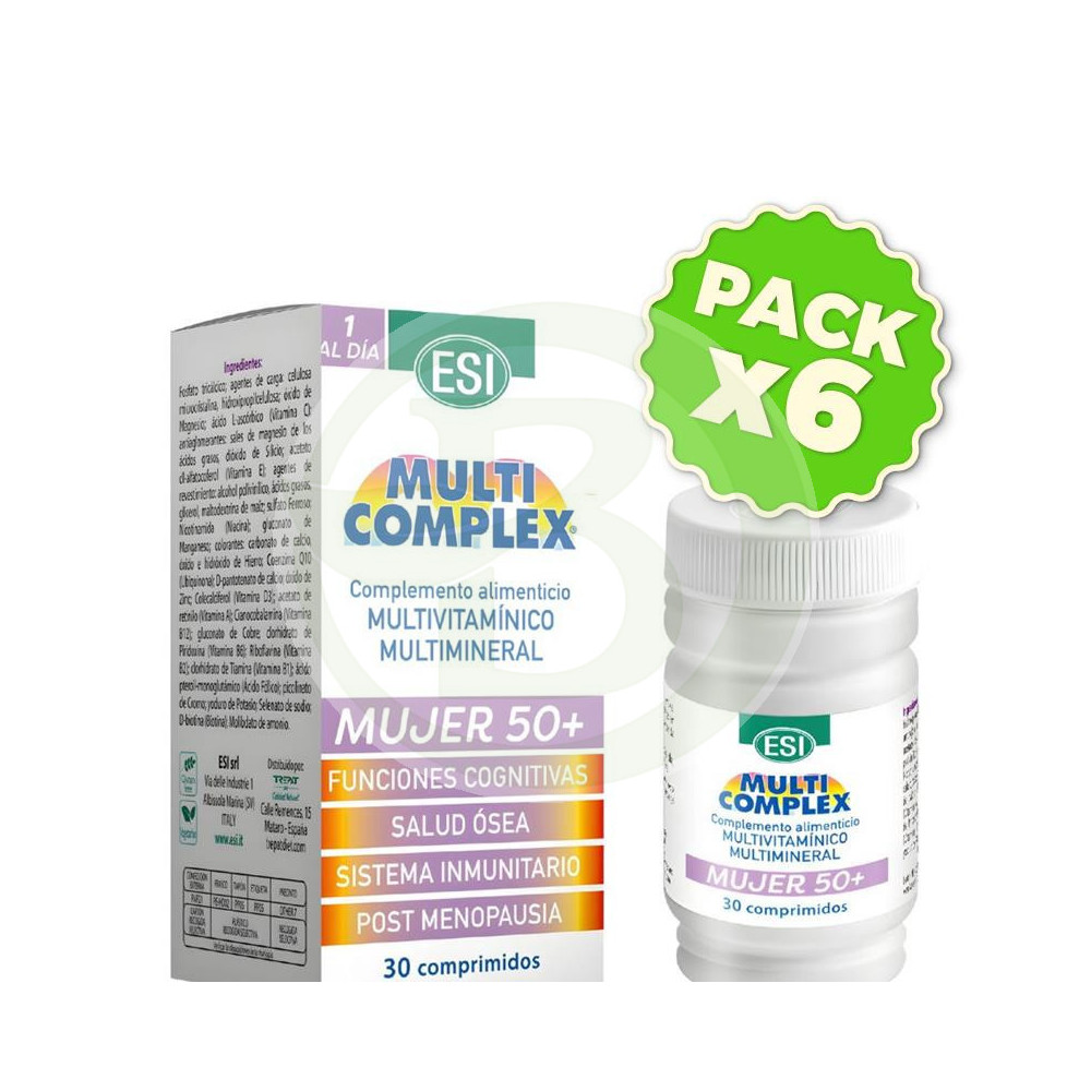 Multicomplex Mujer 50+ está elaborado de manera natural por Esi a base de vitaminas , que se utilizan comunmente para mejorar las funciones vitales...