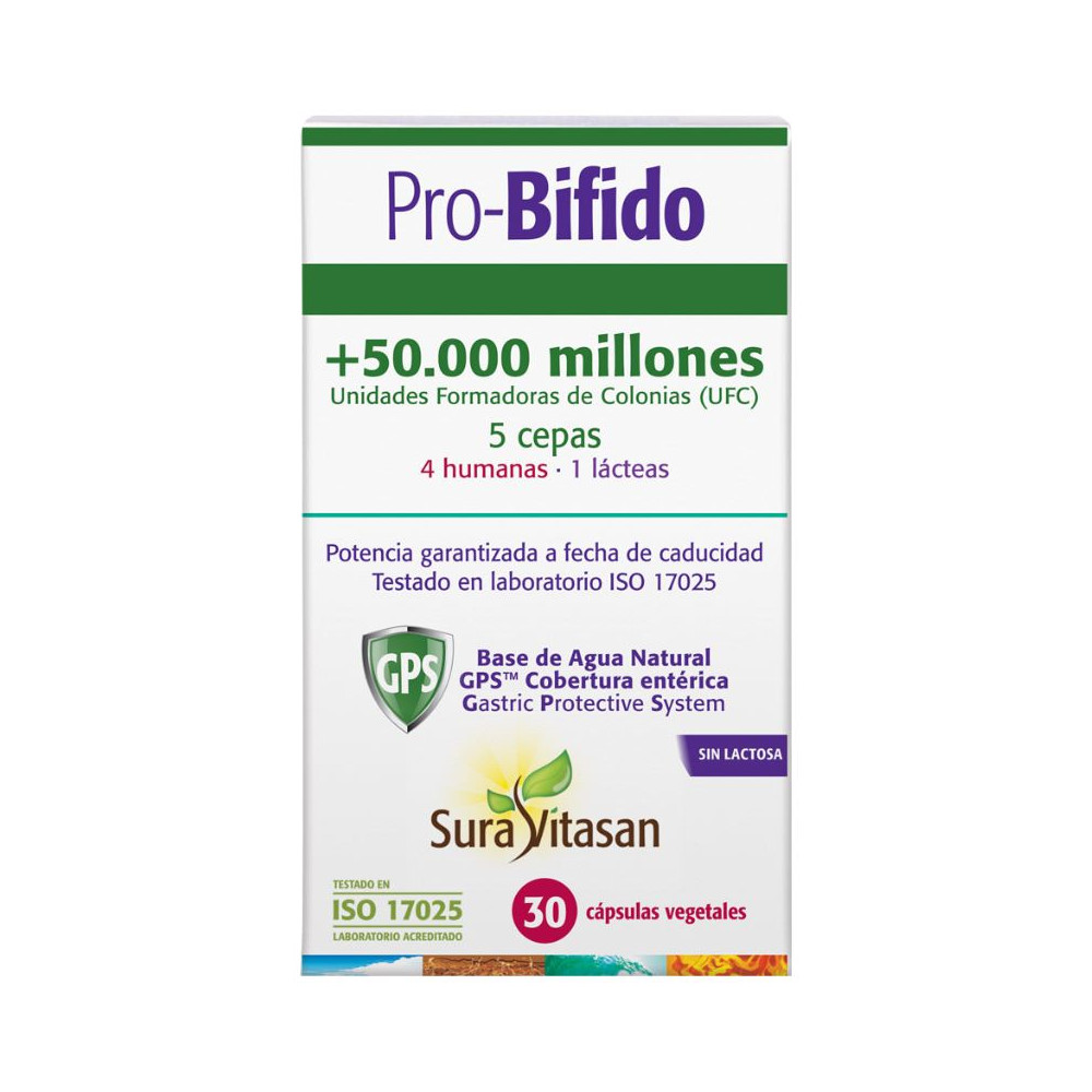 Almidón de patata, cultivo de bacterias (50.000 mill. de microorganismos viables por cápsula, ver información nutricional), antiaglomerante (sales magnésicas de ácidos grasos), antioxidante (ácido L-ascórbico), cápsula vegetal entérica GPSTM (agente de recubrimiento: hidroxipropilmetilcelulosa; solución acuosa para la protección entérica; agua purificada).Modo de Empleo: