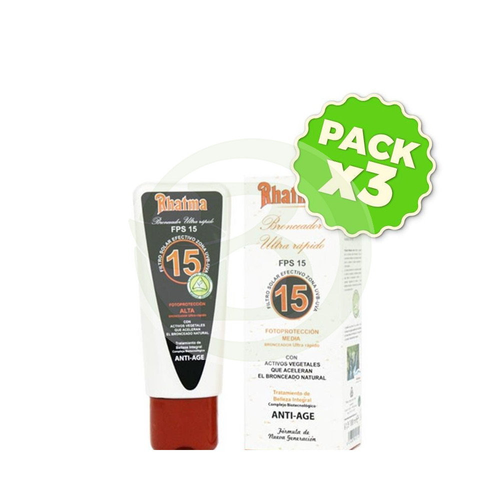 Bronceador Ultrarapido F-15 Rhatma Protección solar media, ideal para personas de piel clara que deseen acelerar su bronceado de una forma rápida y...