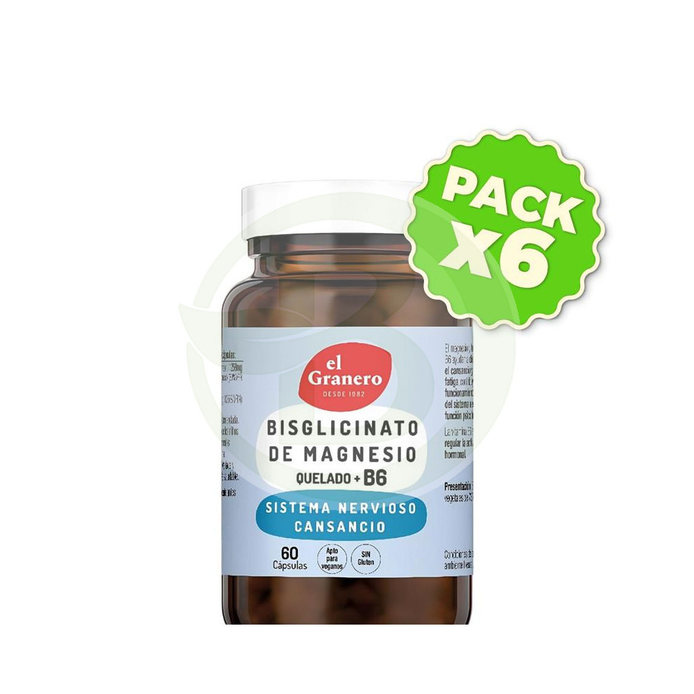 Pack 6x Bisglicinato De Magnesio + B6 60Capsulas Granero