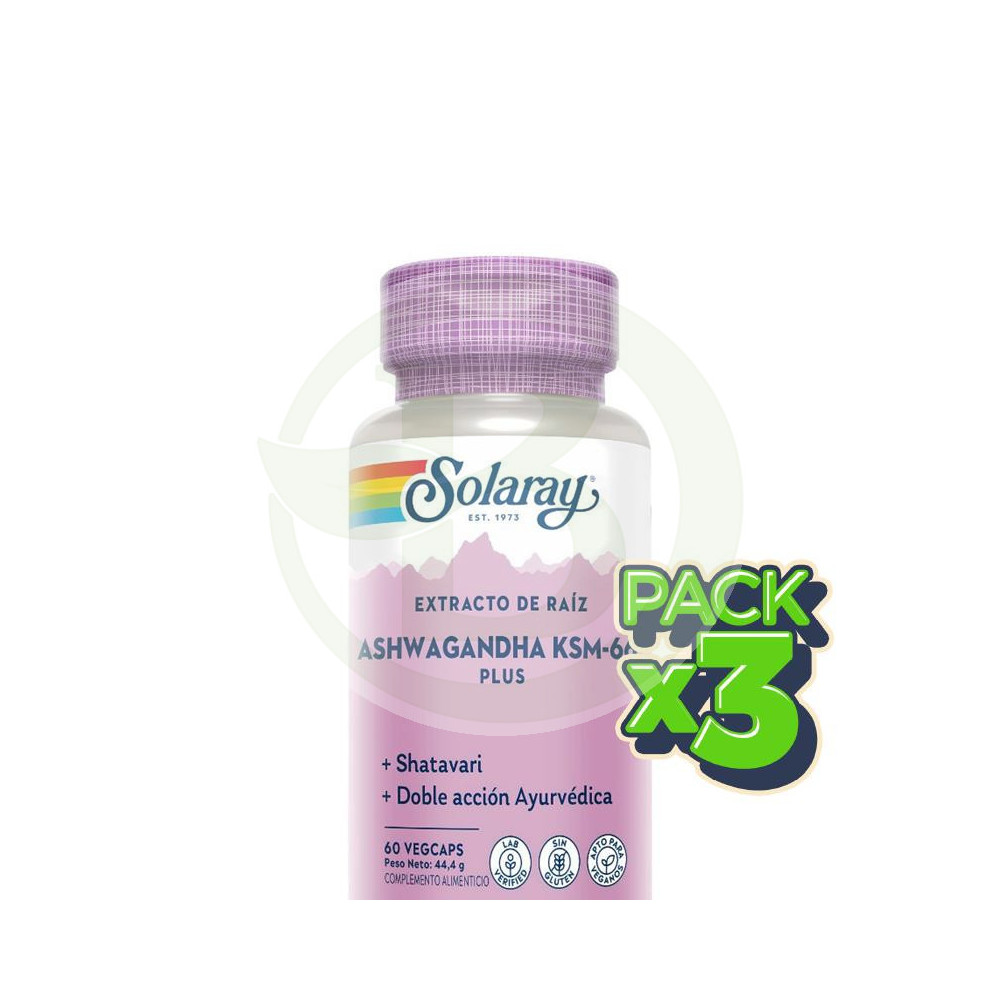 tu herbolario online ¡Precio rebajado! Pack 3x Ashwagandha Ksm-66 Plus 60 Cápsulas Vegetales Solaray Ver más grande