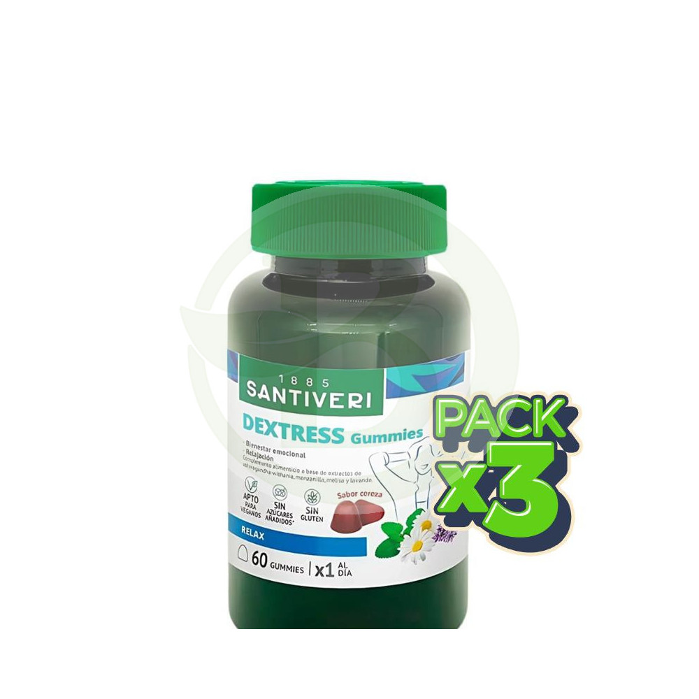Dextress Gummies ha sido formulado a base de materias primas 100% naturales por Santiveri darte el mejor servicio y mimo. Así, los ingredientes de...