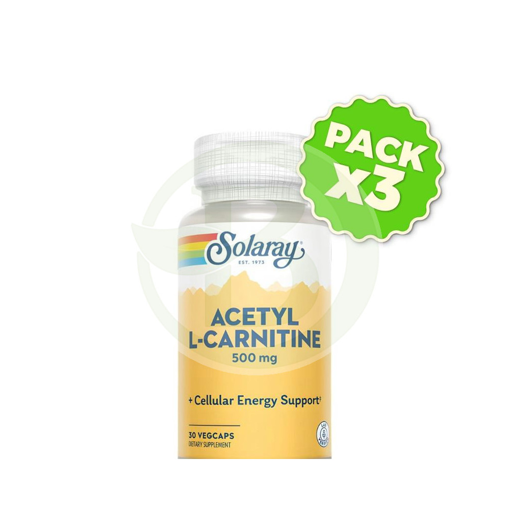 Pack 3x Acetyl L-Carnitine 500Mg 30 Cápsulas Vegetales Solaray