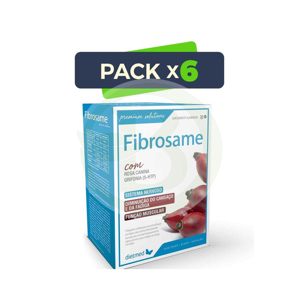 Fibrosame Escaramujo de dietmed con una mezcla de ingredientes usados comúnmente por sus propiedades cicatrizantes y antiinflamatorias.