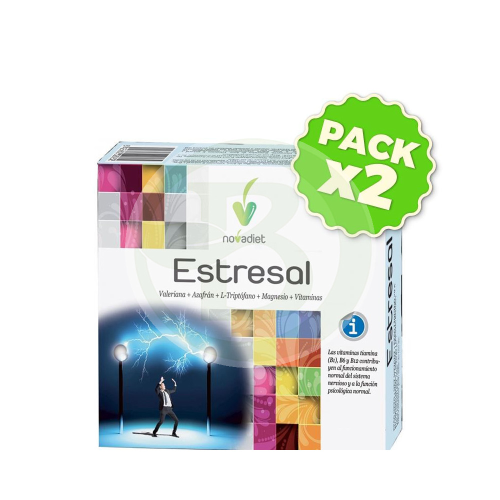 Estresal ha sido elaborado a base de materias primas 100% naturales por Nova Diet ofrecerte el mejor servicio y cuidado. AsÃ, los compuestos de...
