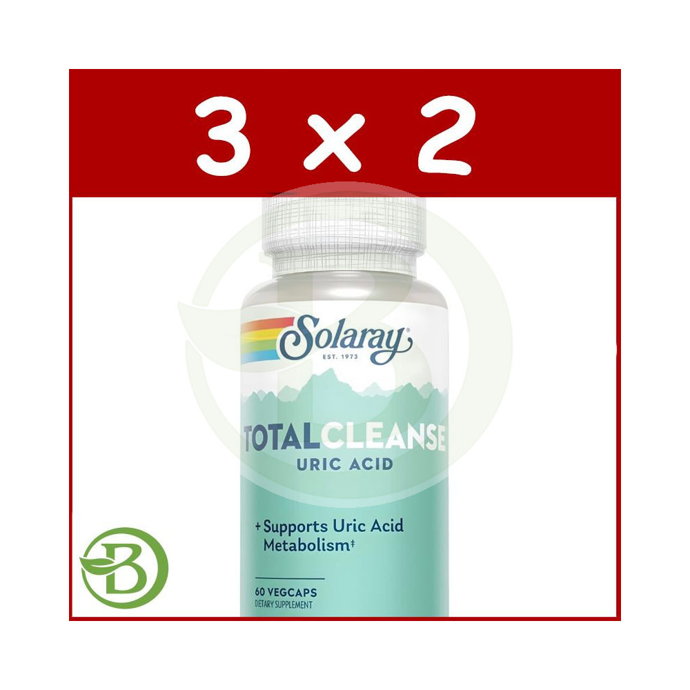 Ver más grande Total Cleanse Uric Acid es un producto diurético formulado a base de ingredientes 100% naturales que regulan los niveles de agua que se encuentran en nuestro cuerpo y ayuda también a expulsar las toxinas. Elaborado por SOLARAY, Total Cleanse Uric Acid se define como una contribución para el cuerpo y su correcto funcionamiento.