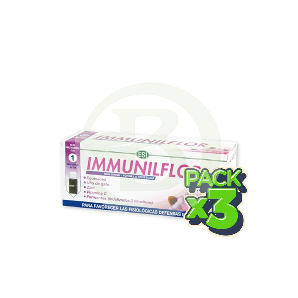 Immunilflor Mini Drink 12 viales con una mezcla de igredientes tradicionalmente usados para estimular el sistema inmunitario, reforzando las...
