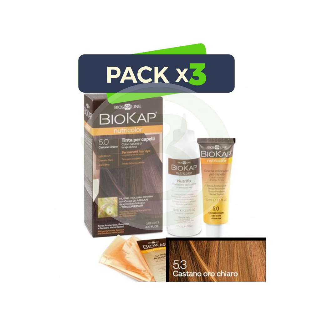 Pack 3x Tinte Nutricolor 5.3 Castaño Claro Dorado 140Ml. Biokap