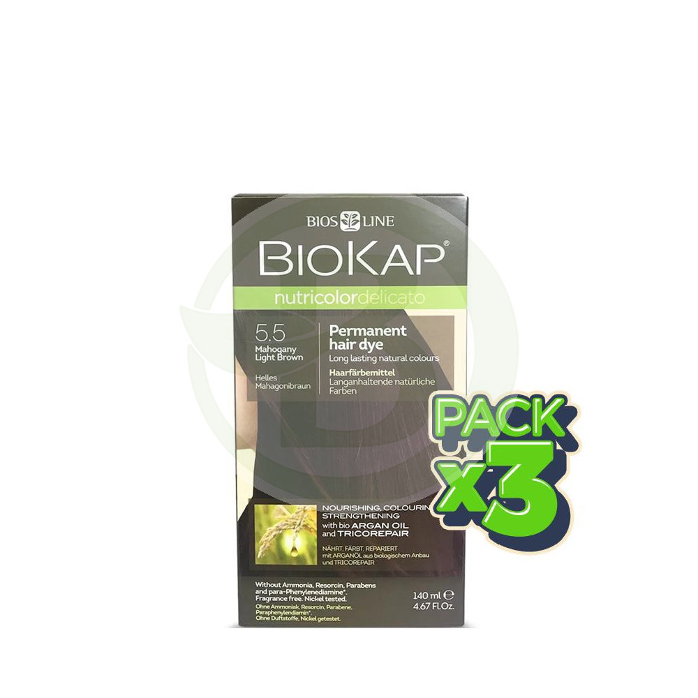 Pack 3x Tinte Nutricolor Delicato 5.5 Castaño Claro Caoba 140Ml. Biokap