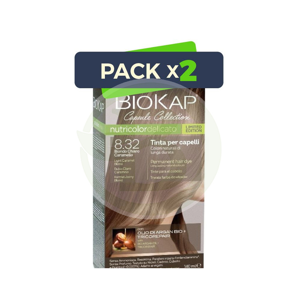 Delicato 8.32 Rubio Claro Caramelo Edición Limitada de Biokap, creado a base de extractos naturales de plantas, ofrece una coloración óptima sin...