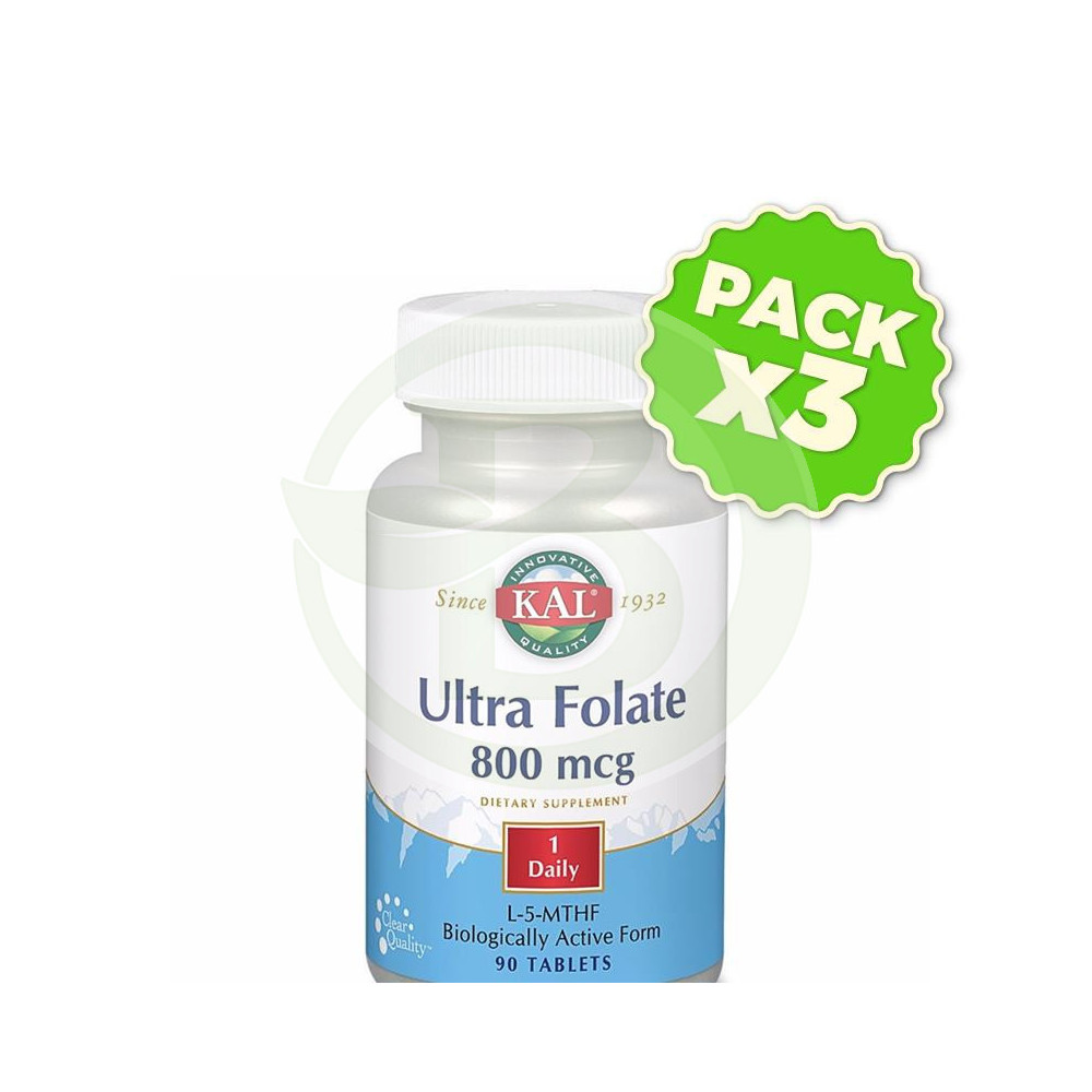Pack 3x Ultra Folate 800Mcg. 90 Comprimidos Kal