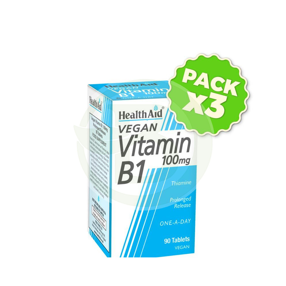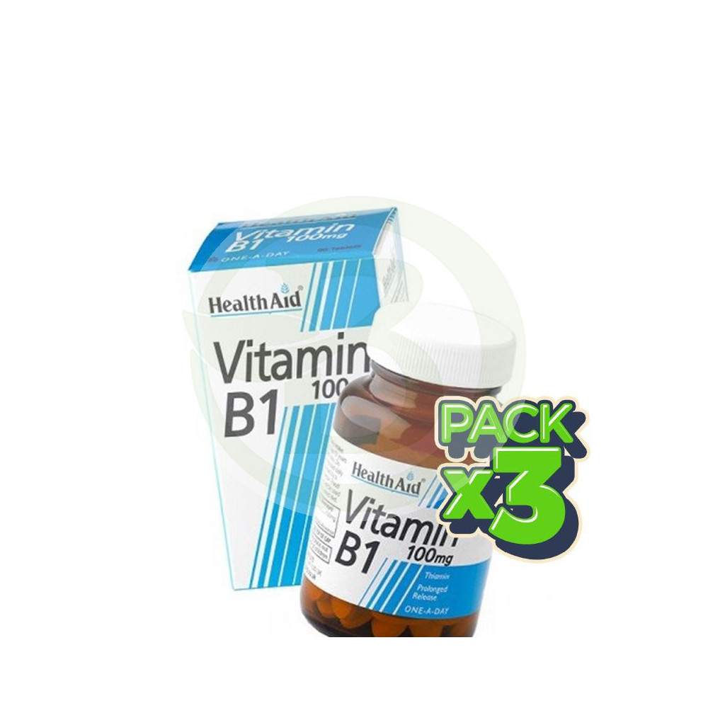 tu herbolario online Pack 3x Vitamina B1 (Tiamina) 100Mg. Health Aid Ver más grande