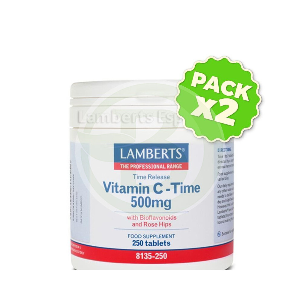 Pack 2x Vitamina C 500Mg. 250 Tabletas con Bioflavonoides Lamberts
