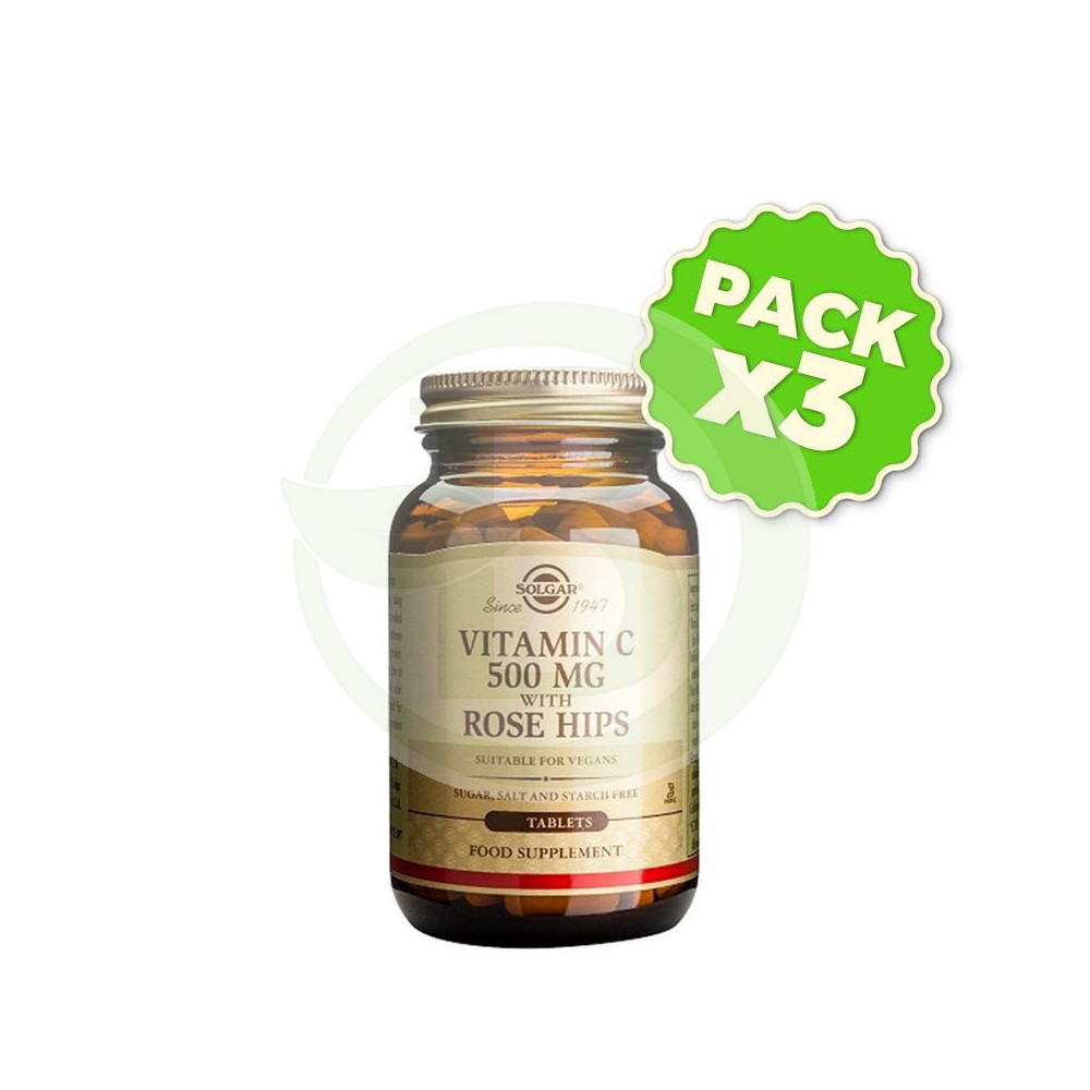 Pack 3x Rose Hips C 500Mg. 100 Cápsulas Solgar