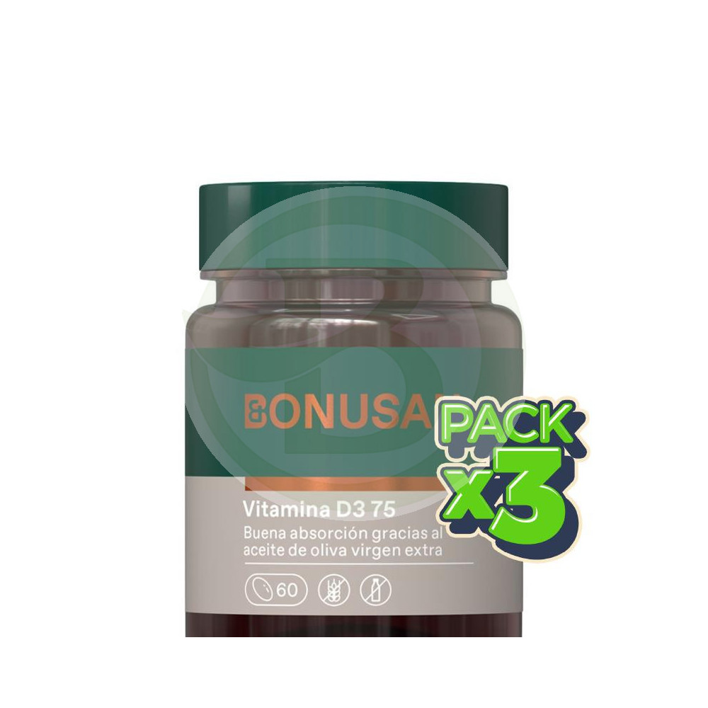 Pack 3x Vitamina D3 75Mcg/3000UI 60 Cápsulas Bonusan