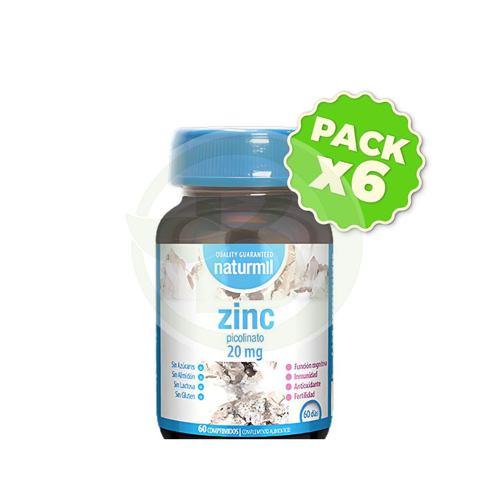 Pack 6x Zinc Picolinato 20Mg 60 Comprimidos Naturmil